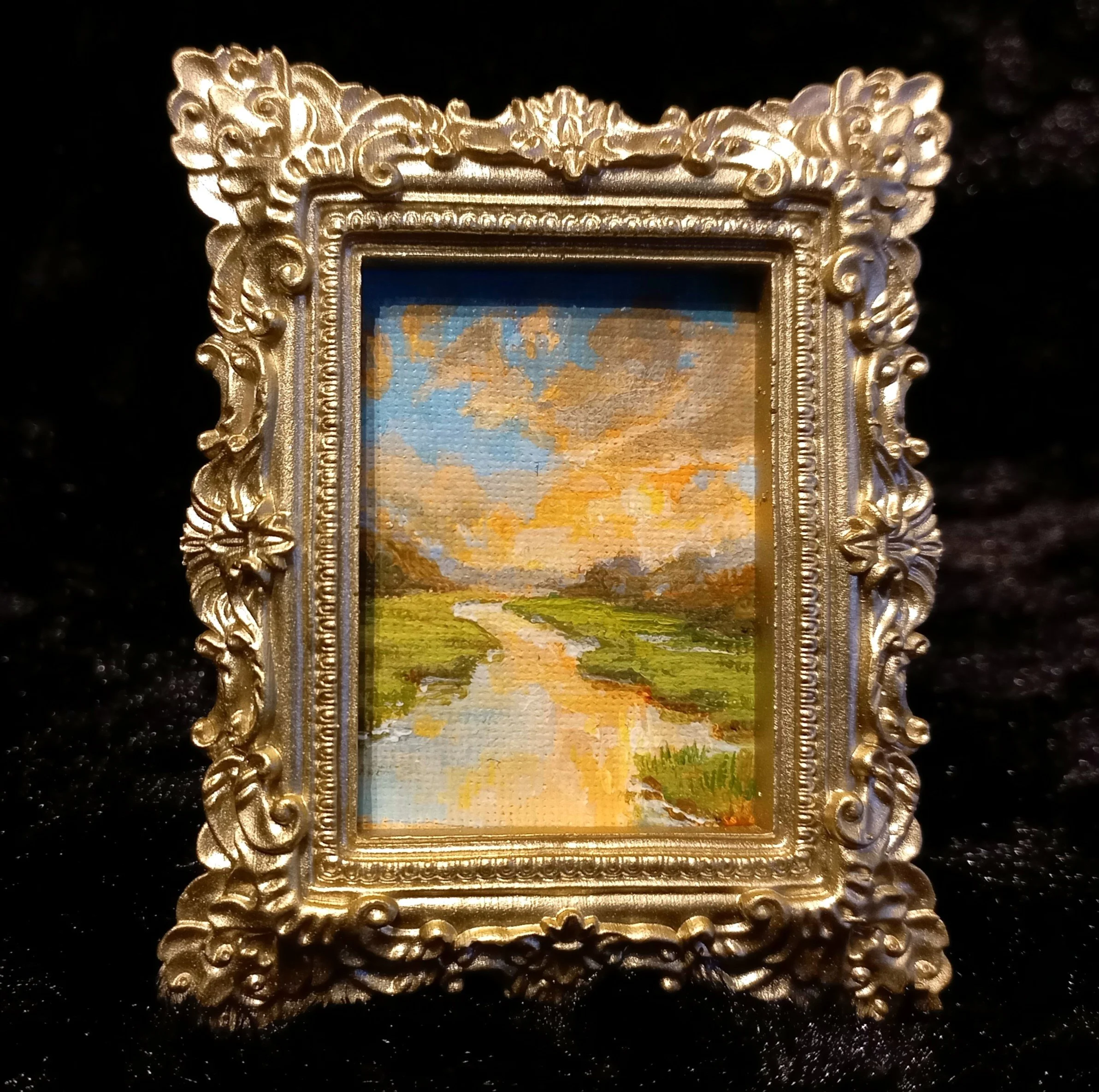 Deze miniaturen in hun gouden of zilveren barok-lijsten zijn geschilderd in acrylverf op canvas, en brengen zo een prachtig stukje kunst naar binnen.