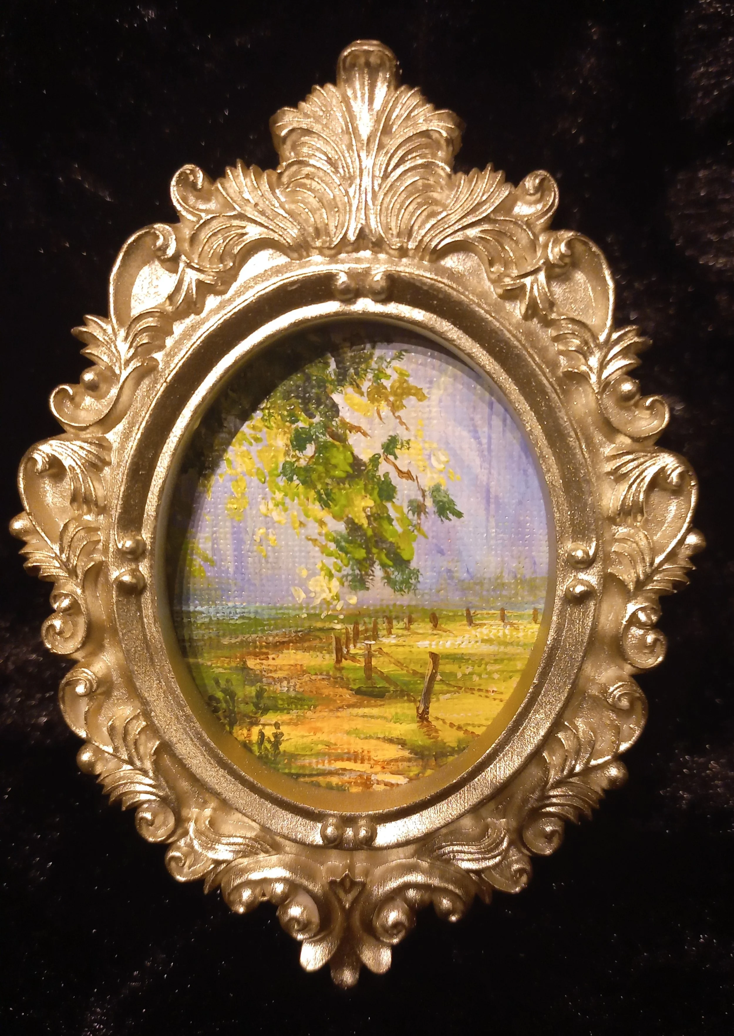 prachtige landschapjes in 5,5 bij 6,5 cm ovale miniatuur